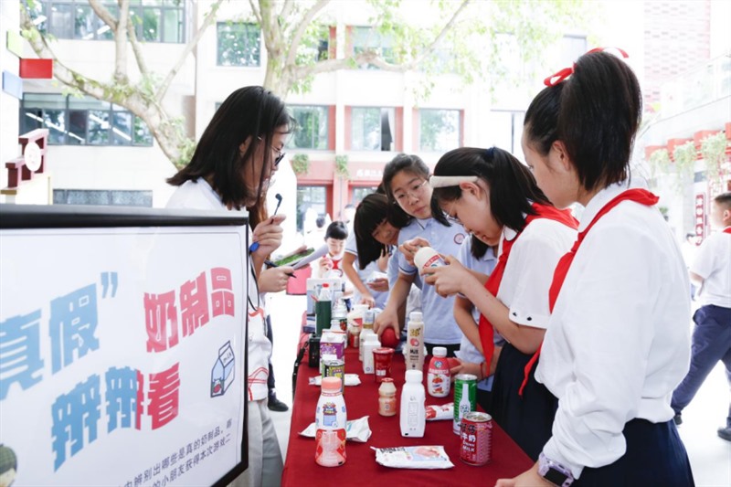 为让同学们切身掌握这些知识,活动设置了游戏互动环节,让同学们在游戏中通过细致的对比,让同学们清楚地了解到真奶制品与假奶制品在配料表、营养成分等方面的差异。同时,专家们还亲自示范并指导同学们进行自制酸奶。同学们在专家的耐心指导下,小心翼翼地将各种材料进行调配,然后满心期待地等待着酸奶的制成,整个过程充满了欢声笑语。