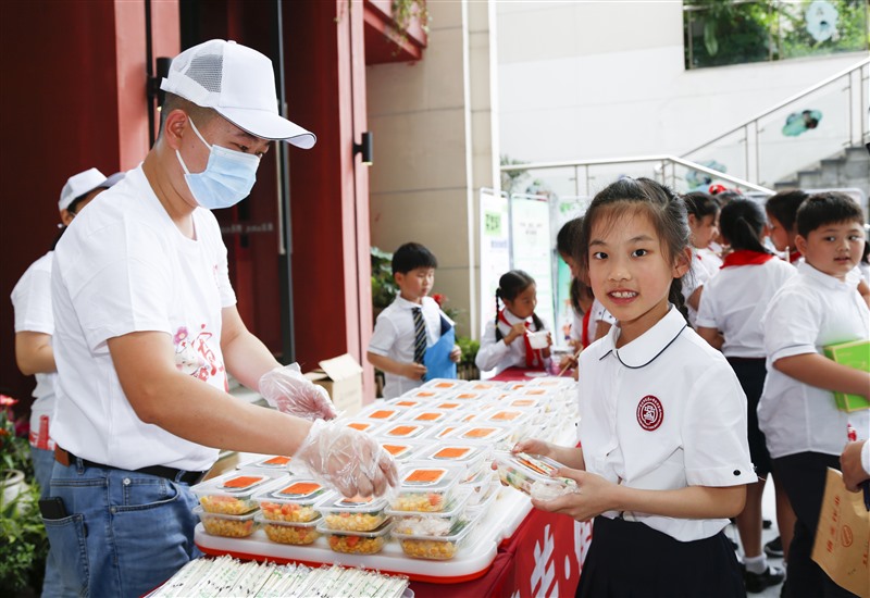 当天的活动中,重医附二院膳食科还为同学们贴心准备了120份营养餐,通过色彩丰富的搭配和科学合理的食材组合,让同学们眼前一亮。这些营养餐包含了新鲜的蔬菜、优质的蛋白质以及适量的碳水化合物,既满足了同学们身体成长所需的营养,又能帮助他们养成健康的饮食习惯。“这个营养餐看起来很清淡,吃起来也很好吃,我以后也要这样健康饮食。”来自六年级二班的颜同学在品尝营养餐的过程中赞不绝口。而重医附二院公共卫生科和健康医学中心的工作人员们也借此机会,向同学们详细讲解了各种食物的营养价值以及合理膳食的重要性,让同学们更加深入地了解到健康饮食的奥秘。