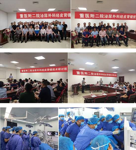 重庆是国内泌尿系结石病高发地区,常见复杂性肾结石的患者。目前各种先进技术的出现使得临床对于结石的治疗手段越来越多样化,其中经皮肾镜技术是泌尿外科医生应掌握的最为成熟的临床治疗技术。为了提高重庆地区基层泌尿外科医生经皮肾镜技术水平,让基层泌尿外科医生了解到目前经皮肾镜国内领先的技术,更好的为重庆地区的广大群众解决结石病的痛苦。重医附二院泌尿外科于2019年6月20日在泌尿外科江南院区顺利举办了经皮肾镜技术研讨班,研讨班邀请了来自主城和区县的28位泌尿外科医生参与,本次研讨班不仅有泌尿外科姜庆主任带领的结石治疗团队带来手术演示和经验分享,更荣幸地邀请到广州医科大学第一附属医院刘永达教授、北京清华长庚医院胡卫国教授、兰州大学第一医院张伟教授等国内知名专家分享多年的技术经验和现场手术演示。