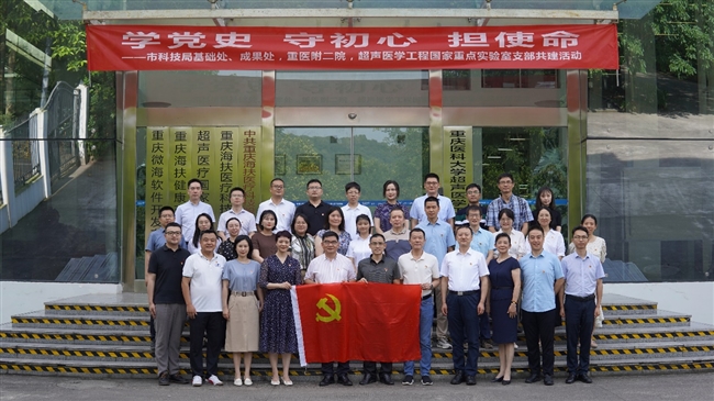 为贯彻落实高质量党建引领保障高质量发展,坚定落实科教兴院战略部署,2024年7月19日上午,在党的二十届三中全会胜利召开之际,重医附二院党委书记袁军带领医院科研处与重庆市科技局基础处、成果处,重庆医科大学超声医学工程国家重点实验室联合开展“学党史、守初心、担使命”支部共建活动。
