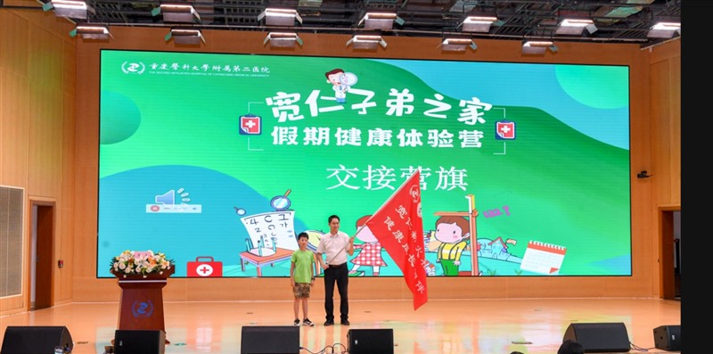 7月12日下午,随着营旗交接仪式的完成,重庆医科大学附属第二医院(以下简称:重医附二院)“宽仁子弟之家”健康体验营活动在江南院区落下帷幕。