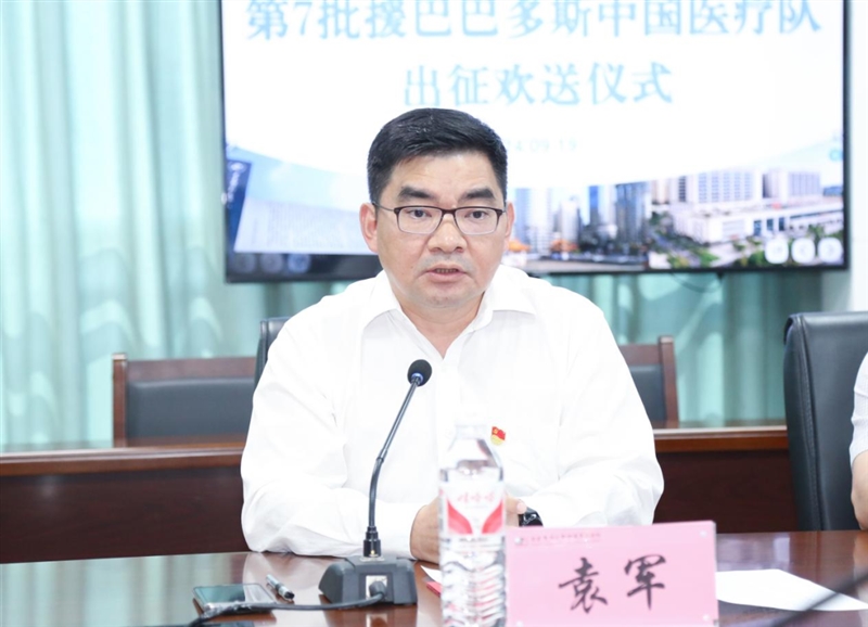 9月19日,在第7批援巴巴多斯医疗队队员派出之际,我院举行欢送仪式,院党委书记袁军,党委副书记、院长何大维出席欢送仪式并讲话。副院长段绪坤、纪委书记颜正,副院长张安,以及党办、院办、人事处、医务处、麻醉科、心血管内科、超声科、血管疝腹壁外科、核医学科等科室负责人参加。欢送仪式由人事处处长陈歆主持。