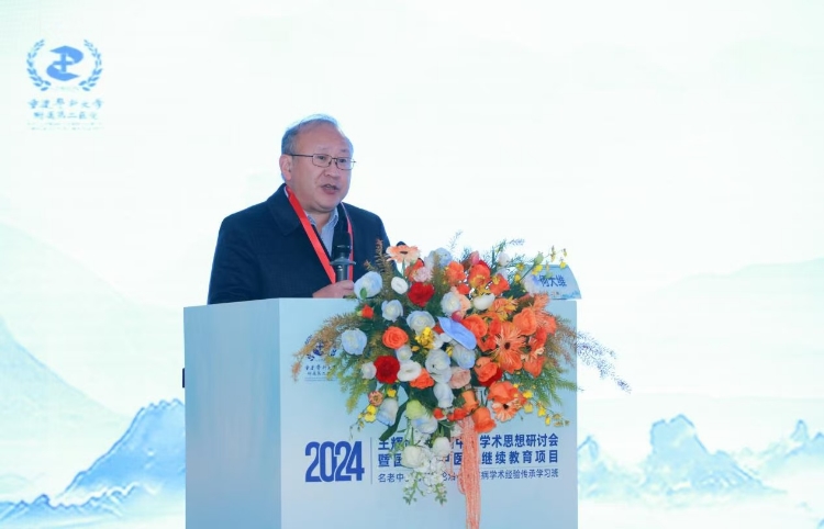 2024年11月24日,由重庆医科大学附属第二医院(以下简称“重医附二院”)主办、中西医结合科承办的王辉武全国名中医学术思想研讨会暨2024年国家级中医药继续教育项目《名老中医药专家论治心神疾病学术经验传承学习班》在重医附二院江南院区顺利召开。党委副书记、院长何大维,重庆市卫生健康委员会二级巡视员王世纯出席并发表讲话,河北省中医院李佃贵国医大师发表在线致辞,会议由中西医结合科王维教授主持。