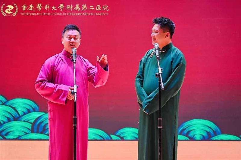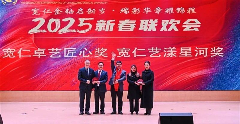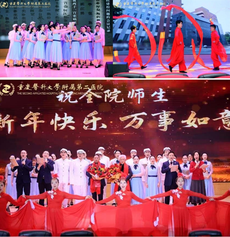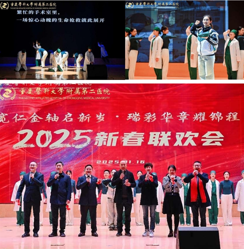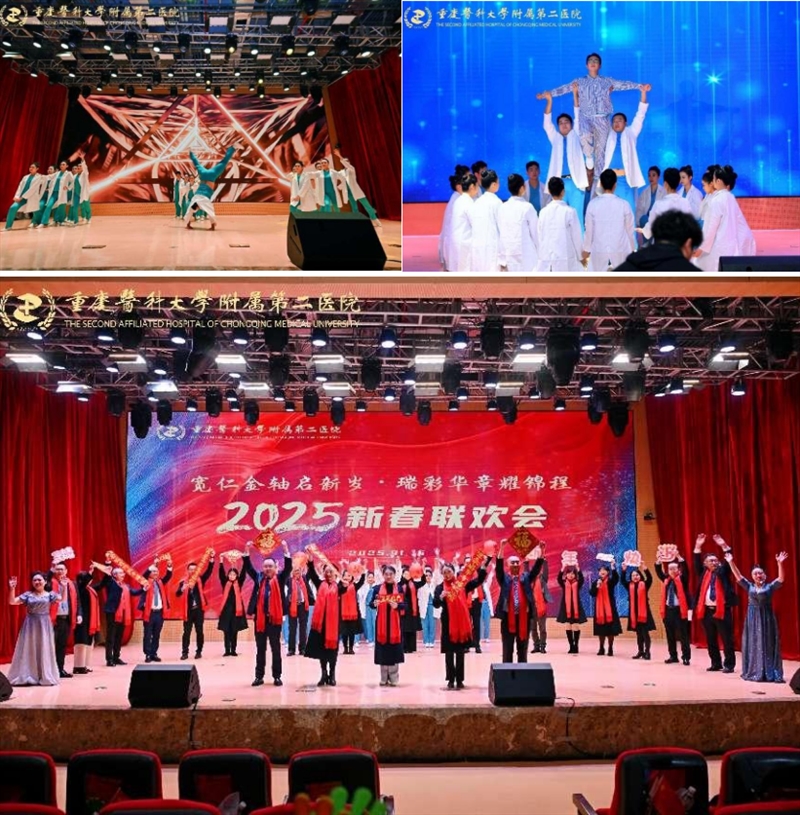 1月16日下午,重医附二院2025年新春联欢会通过线上直播后,这场朴素、接地气又充满惊喜的“民间春晚”收获11.3万点赞。此次联欢会由党委支持、工会牵头承办,围绕“宽仁金轴启新岁,瑞彩华章耀锦程”主题,设置宽仁会议中心主会场和渝中院区门诊、江南院区门诊、感染与肝病中心三个分会场连线送祝福,并通过线下演出+线上直播的方式立体呈现,总观看人次4.7万。