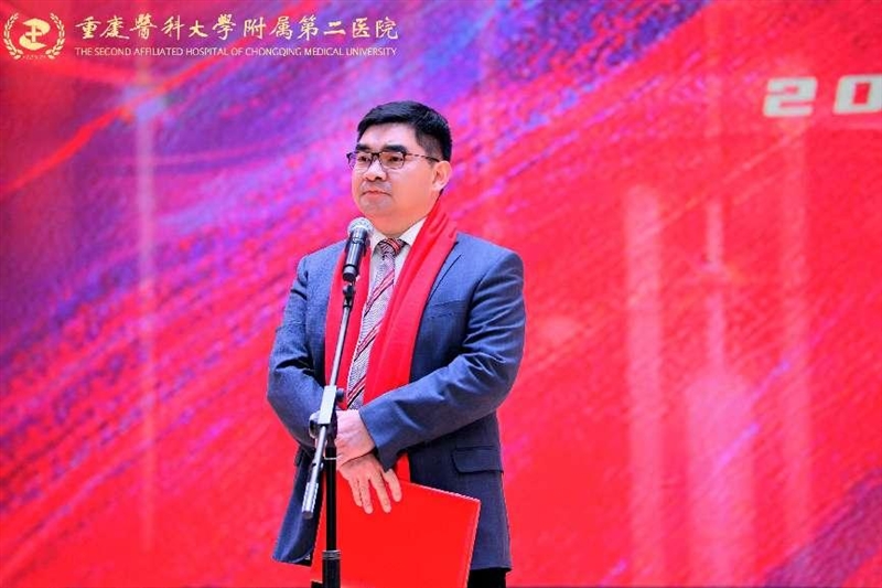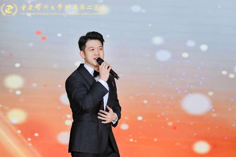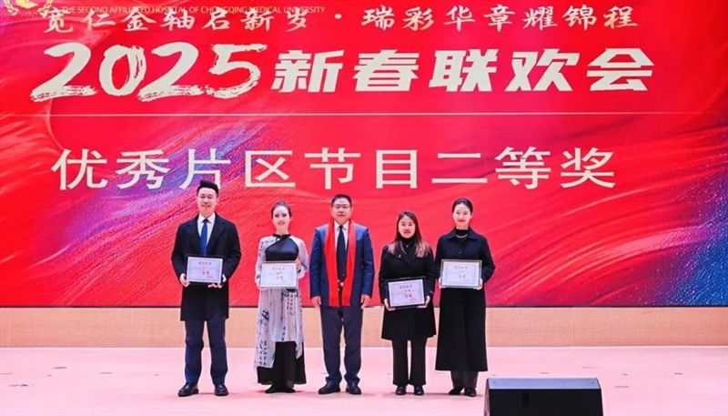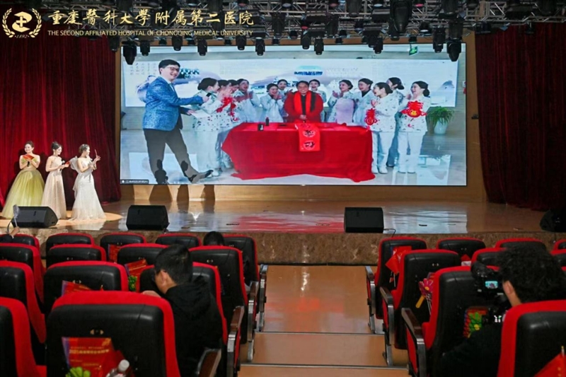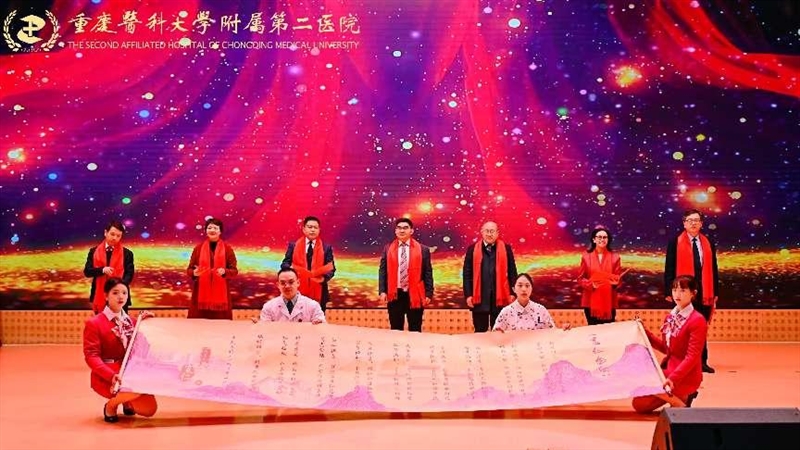 晚会在金轴传递中启幕,院领导集体朗诵,祝愿重医附二院瑞蛇耀岁、同襄骏业续宽仁!