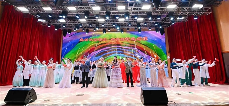 联欢会节目贯穿“宽仁金轴·祥卷展新元”“治病救人·灵素济尘寰”“教书育人·硕德毓俊贤”“顶天立地·壮志傲碧霄”“跨步新程·宏途绘锦年”等五个篇章,涵盖音诗画、舞蹈、相声、器乐演奏等多种艺术形式,宛如一场视听飨宴。