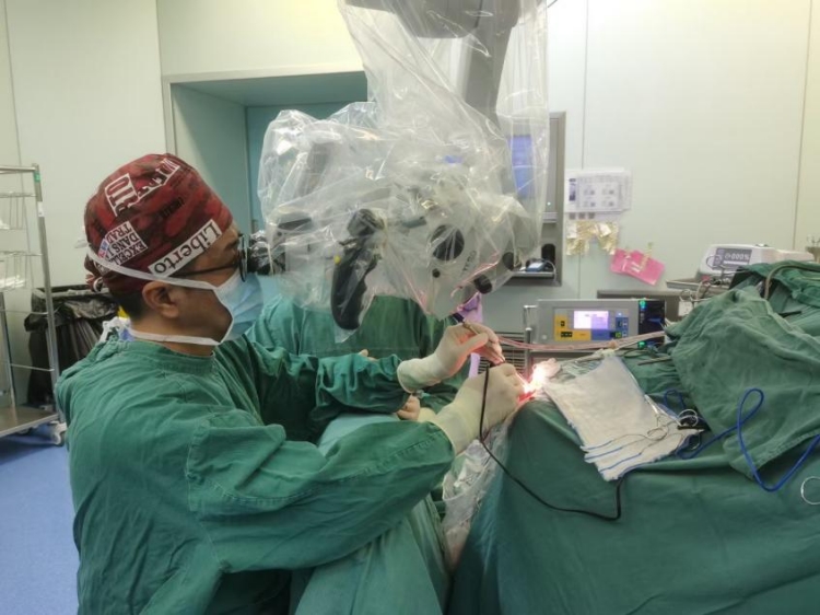 王旭辉解释,颅底上面是娇嫩的大脑,下面是眼耳鼻喉、颌面头颈,手术无论从哪个方向到达颅底,都是艰险重重,唯有披荆斩棘开辟一条狭窄幽暗的路径。但手术就像行走在危机四伏的迷宫,如果路径不熟,技术不精,损伤了那些大大小小的神经,给患者带来的就是失明、瘫痪等并发症。所以,颅底外科因其手术难度极高,被认为是“皇冠上的明珠”。术者需“全副武装”上阵,熟练掌握显微镜和内镜下的操作,精通颅底及周围的解剖结构,并能游刃有余处理各种血管风险,进行各种类型的修复。同时,颅底外科医生需要绝对的耐心,以及不错的体力、毅力,不然经常十几个小时的手术是撑不下来的。
