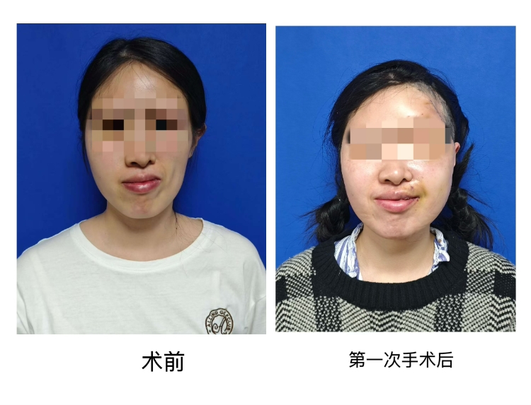 第一次手术,是在去年5月6日,夏德林主任带领团队为王娟实施了第一次高难度手术“半侧颜面萎缩整形术+带血管游离脂肪筋膜瓣移植整形修复术”。简而言之,就是在耳屏处挖一个隐蔽的小切口,将自身的脂肪筋膜瓣填充到塌陷的地方。