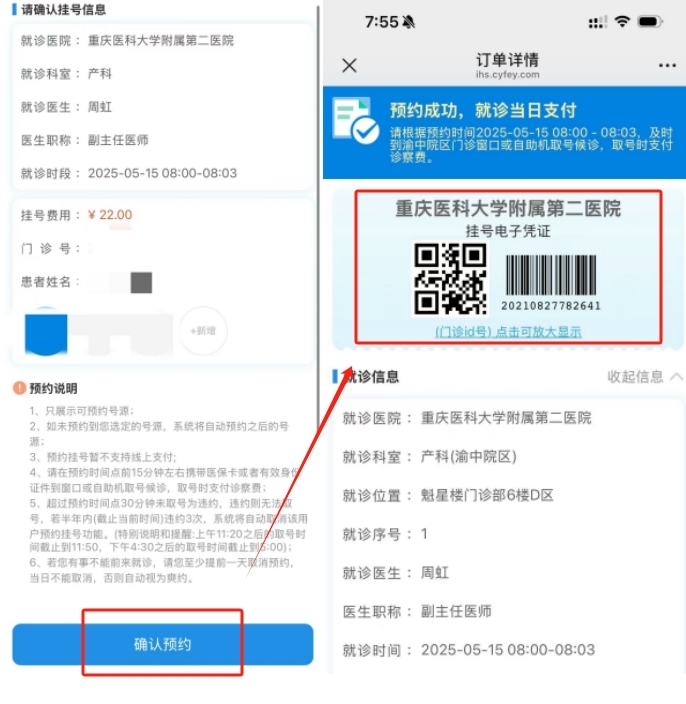 03、进入后选择问诊的日期和时段,添加就诊人,确认挂号信息,最后确认预约即可。