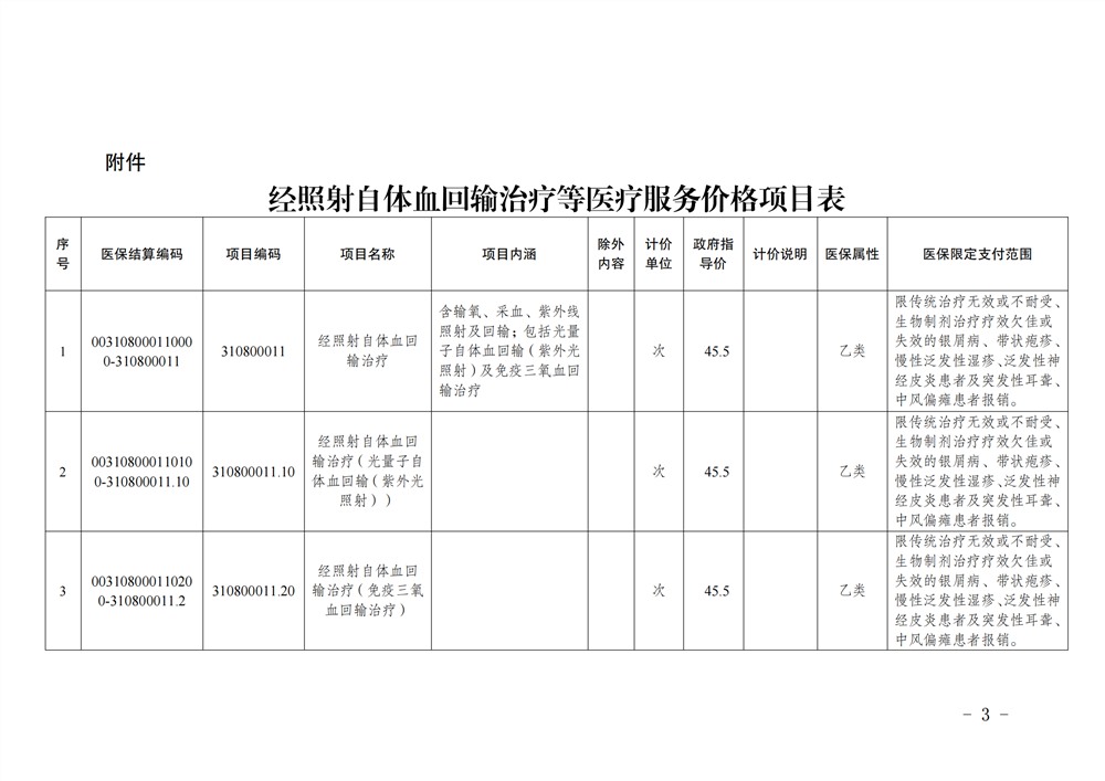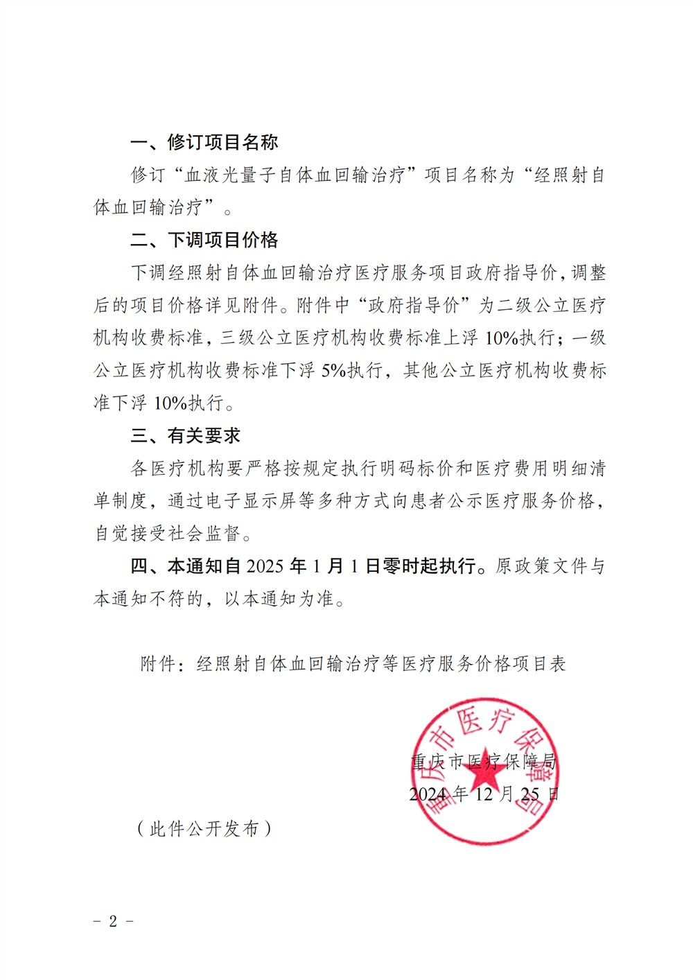 渝医保发〔2024〕49号重庆市医疗保障局关于修订血液光量子自体血回输治疗医疗服务价格项目的通知