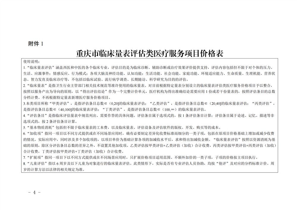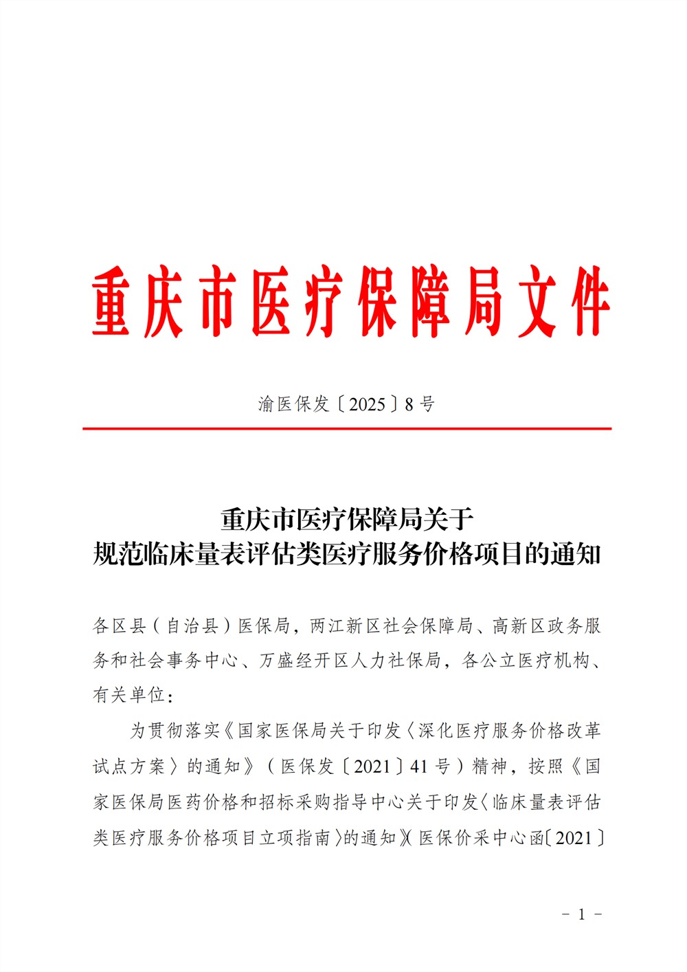 渝医保发〔2025〕8 号重庆市医疗保障局关于规范临床量表评估类医疗服务价格项目的通知