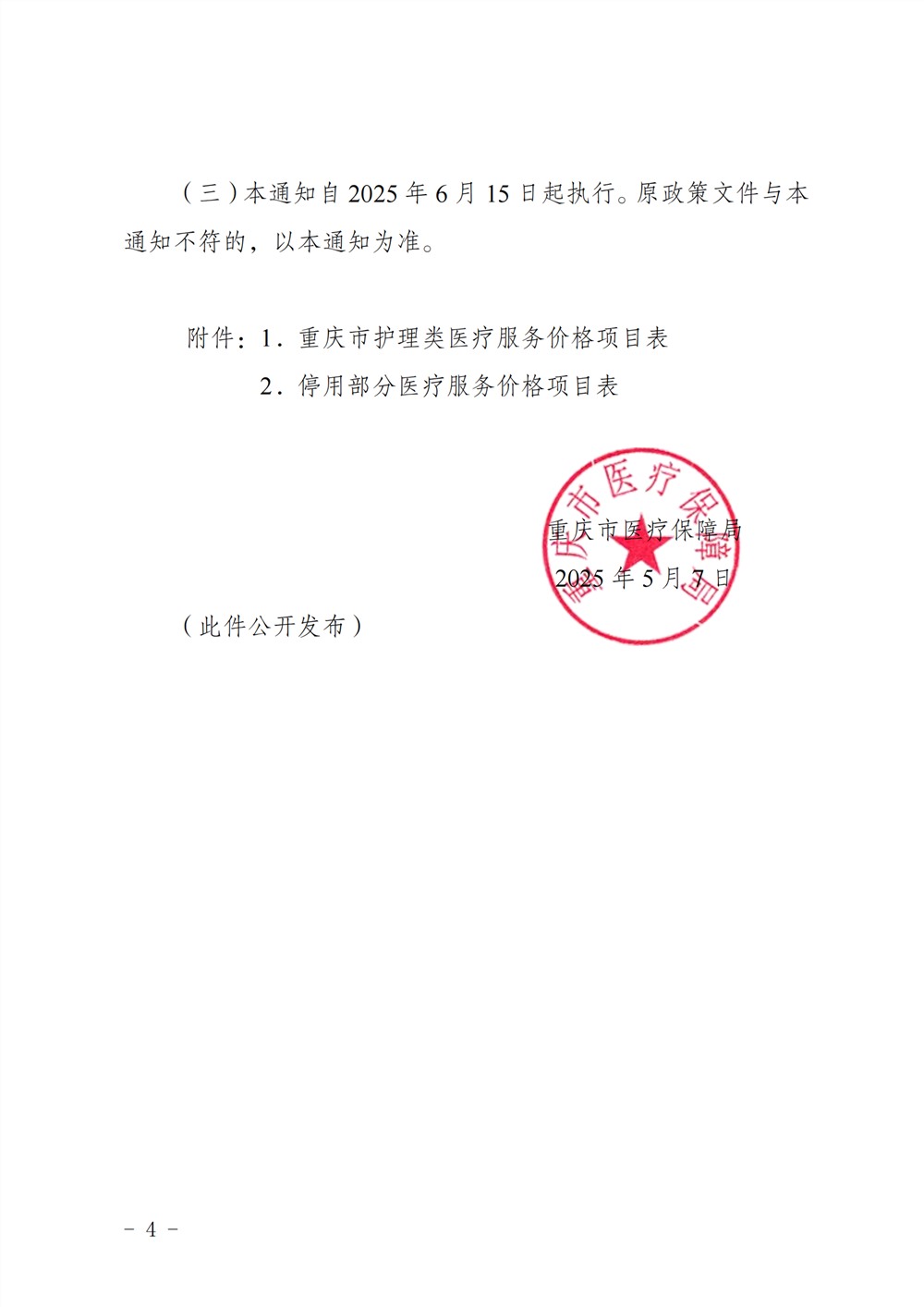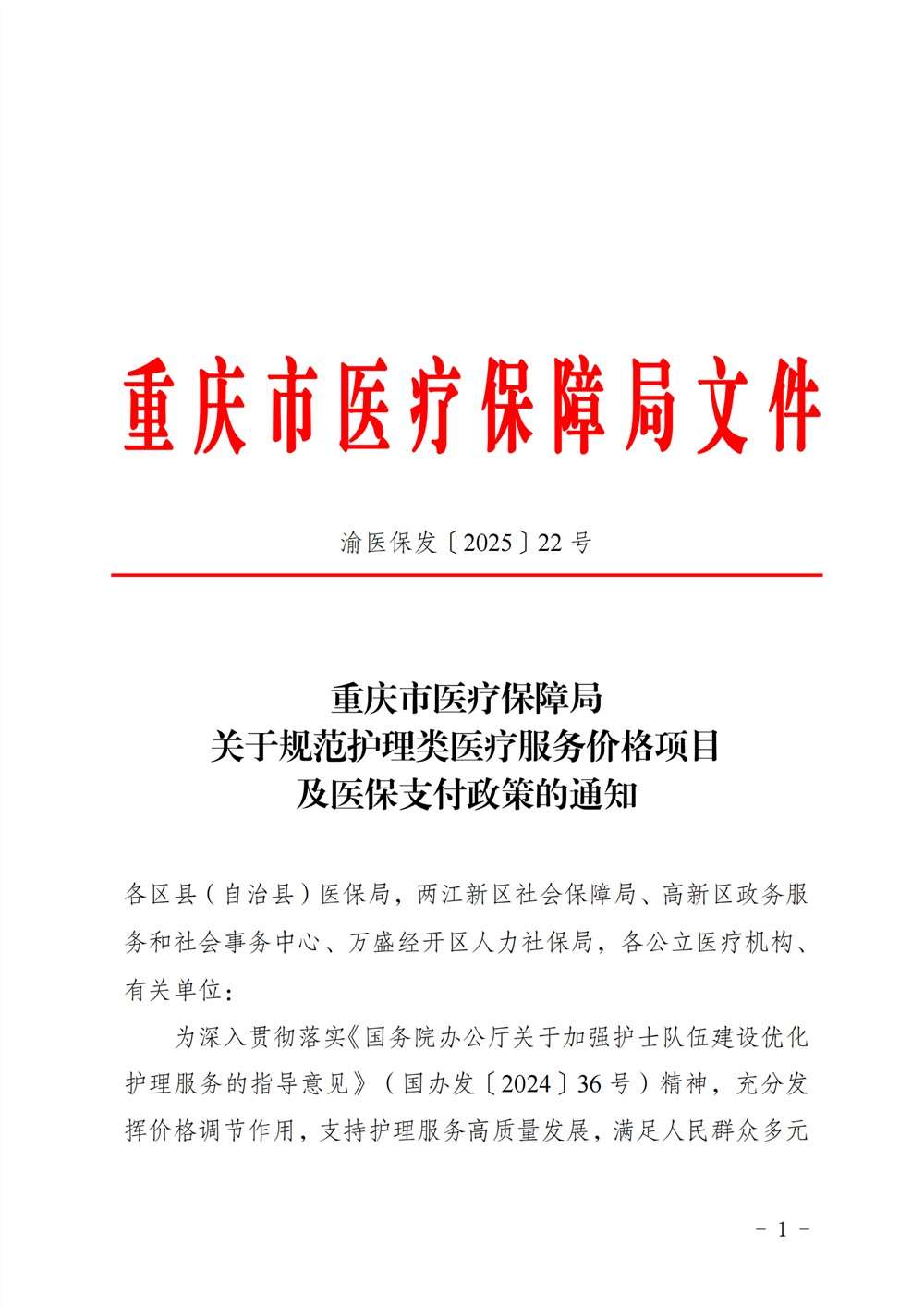 渝医保发〔2025〕22 重庆市医疗保障局关于规范护理类医疗服务价格项目及医保支付政策的通知