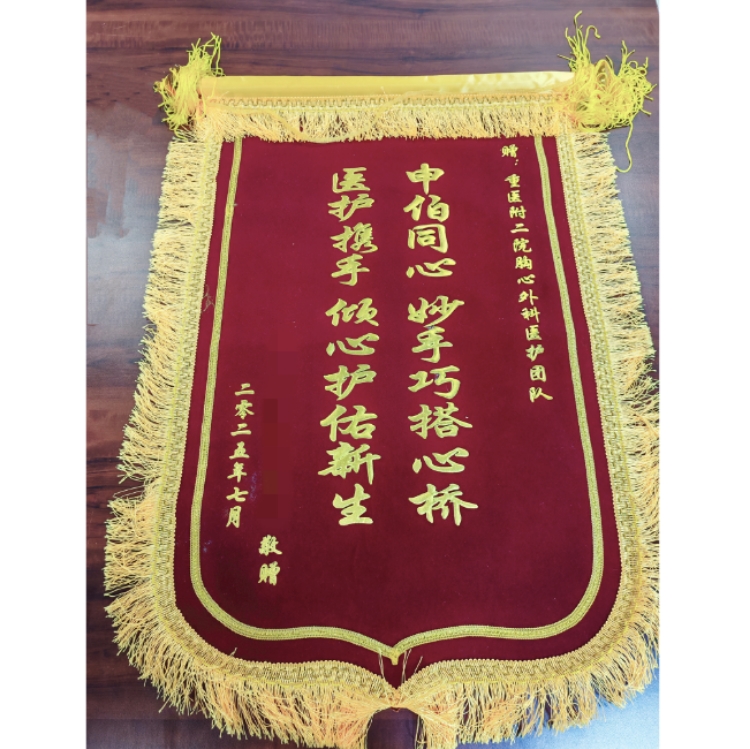 “太感谢申林教授团队了!父亲恢复得特别好,我们明天就能出院回家了!”岳老先生的女儿激动地说,“我们之前还担心父亲这么大的年龄不适合做手术,真是白担心一场。”得益于全动脉化搭桥无需腿部操作的特点,老人术后第一天就能下床活动,短短十余天,取动脉的手臂功能几乎未受影响,困扰多时的头痛也缓解了。为表达诚挚的敬意与感谢,她特意制作了锦旗送到医护人员手中。