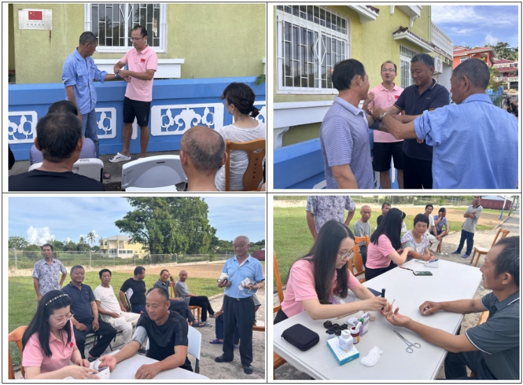 当地时间2025年8月15日下午4点,第7批援巴巴多斯中国医疗队在驻地继续开展“应急急救知识系列讲座”第三讲,重点围绕工人健康需求,结合“止血与包扎”急救技能培训和慢性病防治义诊,全面提升企业员工的健康保障能力。