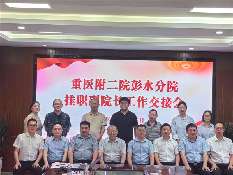 2024年6月25-26日,重医附二院何大维院长、医务处于圣杰副处长、胃肠外科朱鹏主任一行来到重庆附二院彭水医院(彭水县人民医院)举行了挂职副院长交接仪式,并就医联体建设相关工作进行交流座谈。彭水县人民政府副县长任孝云,县卫健委党委书记、主任钟兴云出席会议并讲话,会议由彭水县医院党委副书记、院长周兴福主持,县医院院领导、相关职能部门负责人及附二院支援专家参加座谈。