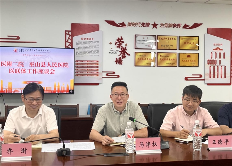 马泮权介绍了巫山县人民医院发展情况和医联体帮扶工作成效。他指出,目前巫山县人民医院正面临重点专科建设乏力,人才队伍结构不合理和绩效运营管理水平较低等诸多困难,要想取得长足发展,还离不开重医附二院一如既往的帮助和支持。