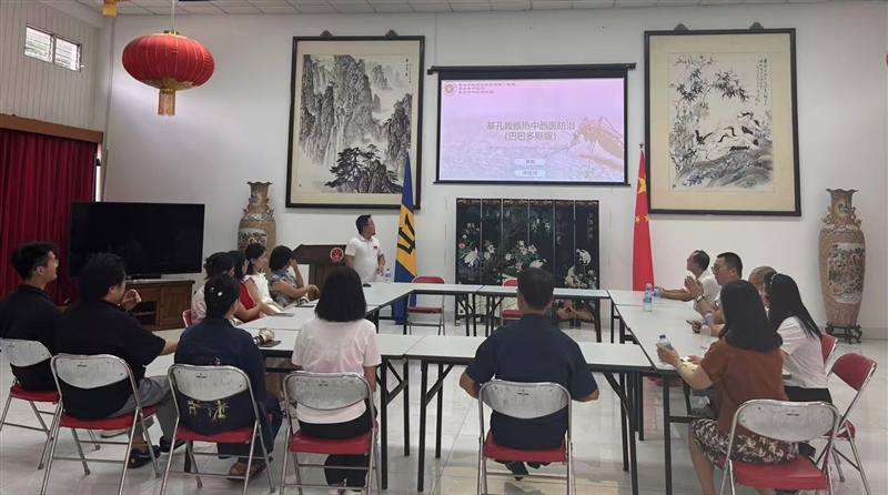 活动中,来自重庆市中医院针灸科的援巴医疗队队员袁野医生,以《基孔肯雅热的西医防治——巴巴多斯版》为题,结合当地疾病流行特点,为馆内工作人员带来了一场深入浅出的科普讲座。讲座内容既包含医学知识,又贴近当地实际,有效提升了大家对这种当地高发传染病的防治意识和能力,获得了现场一致好评。
