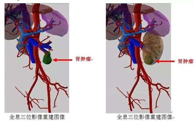在患者的殷殷期待下,刘川教授和胡自力教授采用全息三位影像重建技术,仔细评估患者肾脏肿瘤与肾静脉、主动脉及输尿管之间的关系.