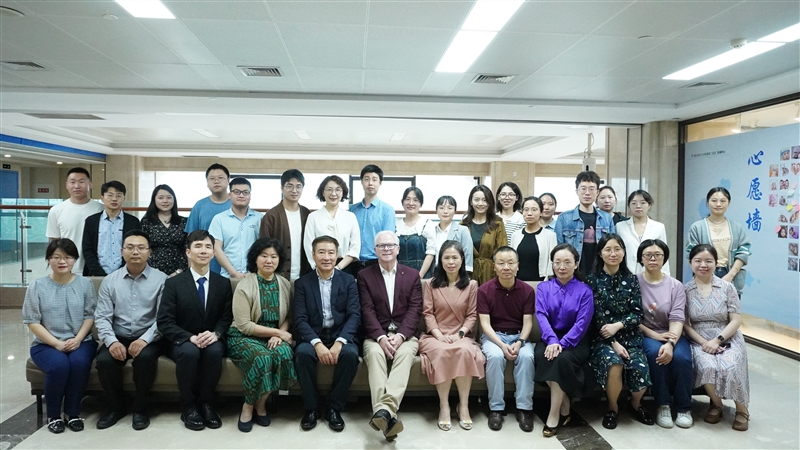 最后,妇产科团队与Mark院士、庞建宏教授一行就双方共同感兴趣的科研领域展开了热烈的讨论。妇产科学术带头人胡丽娜教授主持了本次学术交流讨论会。首先,张燊副研究员向Mark院士介绍了团队在生殖道宫腔菌群与妊娠结局的相关性方面的最新研究数据。Mark院士指出糖类化合物可能参与调节子宫内膜菌群,继而影响胚胎着床和胎儿发育。游爽博士汇报了团队在重组人源化胶原蛋白治疗妇科常见疾病的研究进展、转化应用产品和临床试验结果。Mar院士认为重组人源化胶原蛋白有广阔的应用前景,并提出了胶原蛋白糖基化修饰的设想。胡丽娜教授指出,本次学术交流活动进一步打开了妇产科团队的国际视野,为今后的科研方向提出了新的思考,希望大家以临床转化应用为导向,切实开展能让患者受益的科学研究。