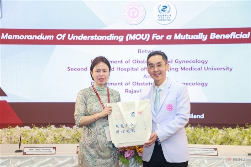 泰国拉贾维迪医院现为泰国公共卫生部系统中规模最大的综合性医院,其前身为泰国第一家妇女儿童专科医院,曾开展了泰国第一例成功分离连体双胞胎的手术。拉贾维迪医院妇产科已与重医附二院妇产科达成合作协议,以聚焦超声治疗这一微无创医学研究为切入点,通过全球多中心研究等项目的合作,可以加强双方在科研领域共同开展前沿医学研究,推动医学科学的进步和创新。在此次会议开幕式的合作仪式中,董晓静主任作为特邀嘉宾致辞,首先表达了对中泰两国人民深厚友谊的祝福,同时也表达了对两院妇产科长远合作的重视与展望。