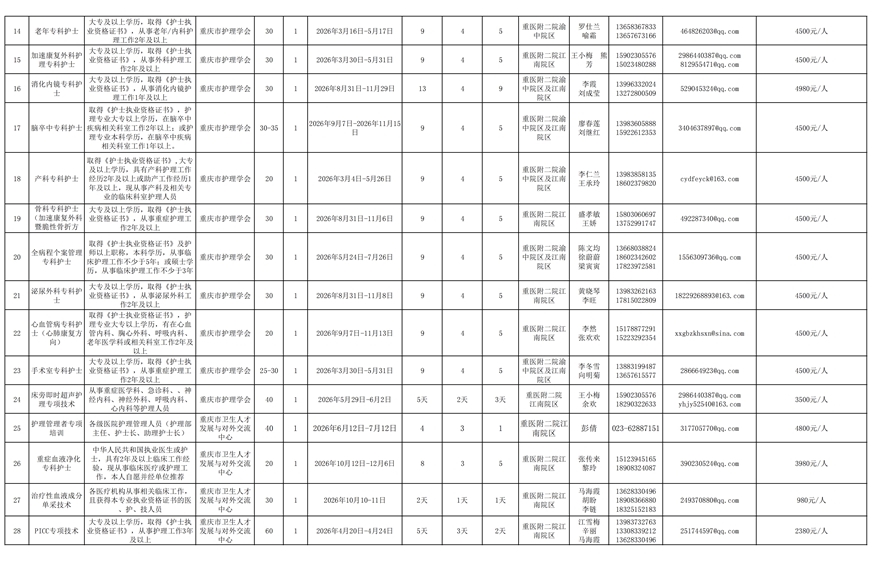 在2018年建成的首批重庆市专科护理联盟基础上,新增扩建护理专科联盟。现已有重庆市护理专科联盟8个(包括伤口造口护理、康复护理、急诊急救护理、呼吸护理、介入护理、全科护理、静脉治疗技术护理、老年病护理),标志我院专科护理在院领导的带领下,已成为重庆乃至西部具较高社会影响力、有一定知名度的护理团队,也进一步践行了“三全护理”的内涵。