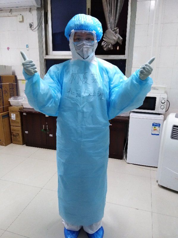 林夏芸是日间病房支援发热病房的一名护士,是一位既漂亮又温柔的妹妹,她最喜欢的一句话是:“在人生的旅途中,每个人的生活都离不开别人的帮助,因为没有谁能够脱离周围的事物而孤立地存在,但在接受别人帮助的同时,我们也要学会去帮助别人”,是我们团队的“指导担当”。工作中,她乐于助人得到科室很多老师的认可,从发热病房组建以来,陆续有不同科室护理人员支援,在搭班的过程中,她们表示非常愿意和芸芸搭班,“别看她年轻,但很有耐心,我们刚来这里,很多环节都不熟悉,芸芸能给我们很多指导性的工作建议,让我们很快地熟悉并融入工作环节!” 尽管身着厚厚的防护服,尽管已连续工作了数个小时,尽管已汗流浃背,但年轻的芸芸老师依然认真指导可能比她还高年资的“新人”老师们工作!