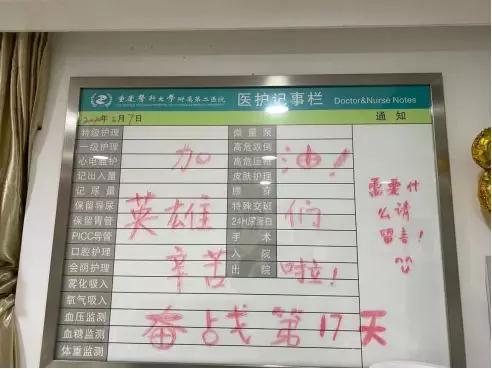 为了准点交接班,每天大家都需要提前一个小时准备。相比穿脱防护服的费时和难受,护目镜起雾才是最大的困扰。发热病房的口号是:“集思广益防起雾,保我操作零失误”。