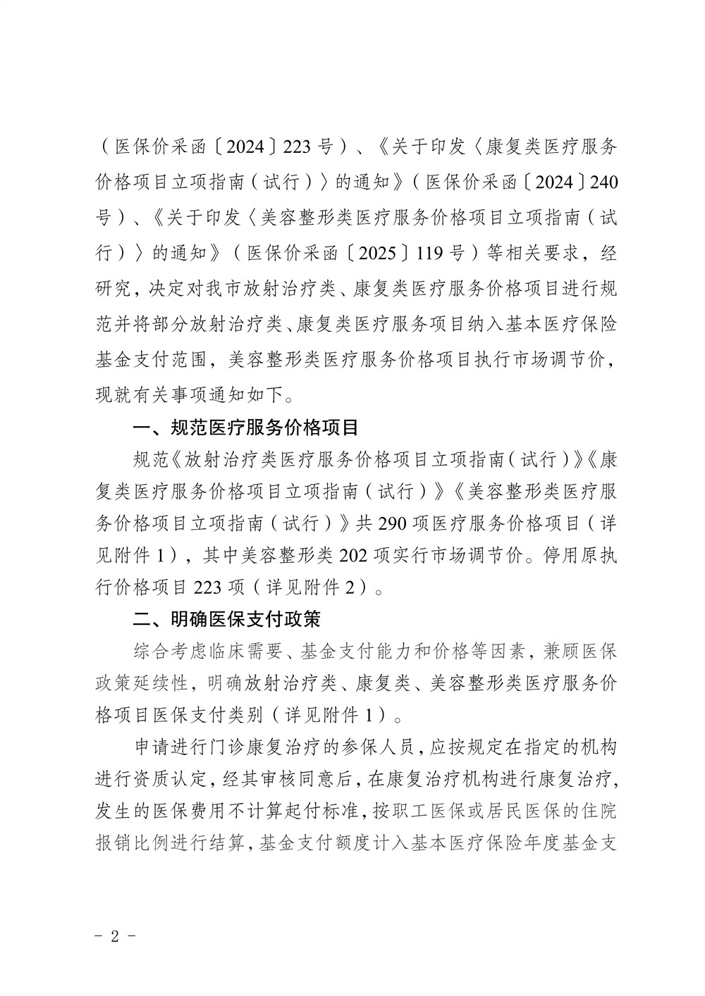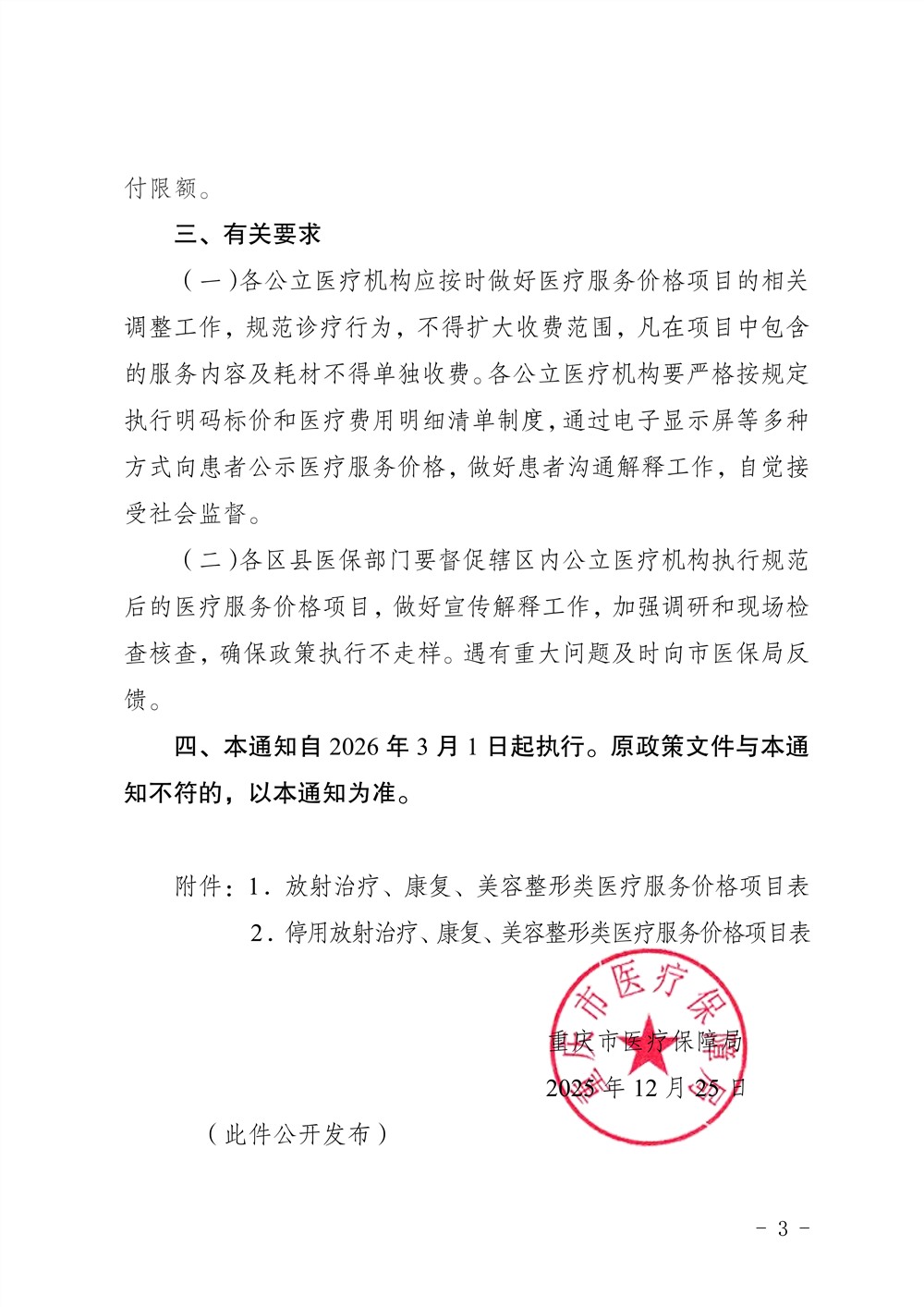 渝医保发〔2025〕49 号重庆市医疗保障局关于规范放射治疗类、康复类、美容整形类医疗服务价格项目及医保支付政策的通知
