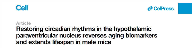 3月5日,重庆医科大学附属第二医院麻醉科鞠大鹏副研究员与北京生命科学研究所/清华大学生物医学交叉研究院张二荃研究员及相关团队、以及转基因动物中心王凤超研究员合作,在国际权威期刊 Cell 在线发表题为《Restoring Circadian Rhythms in the Hypothalamic Paraventricular Nucleus Reverses Aging Biomarkers and Extends Lifespan in Male Mice》的研究论文。