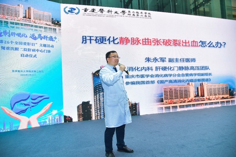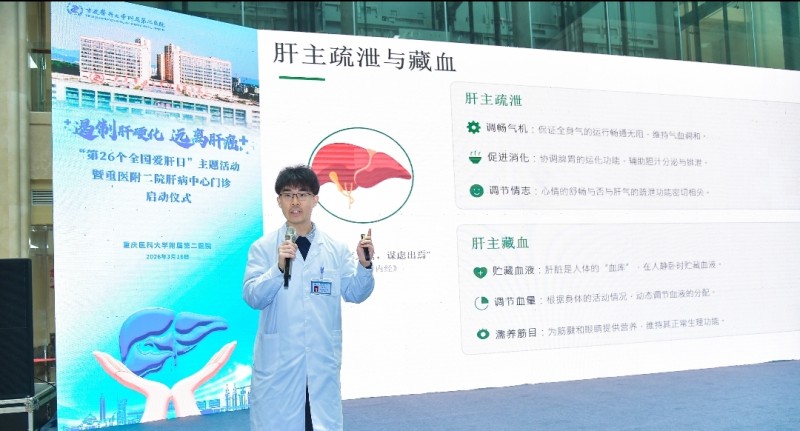 2026年3月18日是第26个全国爱肝日,重庆医科大学附属第二医院(以下简称“重医附二院)在江南院区开展以“遏制肝硬化,远离肝癌”为主题的系列公益活动,通过启动一站式肝病专病门诊、科普讲座、专家义诊、健康市集等多种形式,向市民普及肝病防治知识,提供免费健康服务,以优质的医疗服务守护市民肝脏健康。