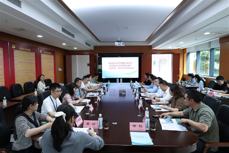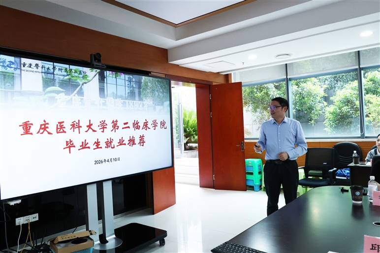 时值重庆医科大学建校70周年之际,为进一步深化附属医院间协同育人机制,拓宽毕业生就业渠道,推动高质量人才培养与医疗卫生事业需求精准对接,2026年4月10日下午,重庆医科大学附属第二医院(以下简称“重医附二院”)与重庆医科大学附属璧山医院(以下简称“附属璧山医院”)联合开展“访企拓岗”专项工作交流座谈。