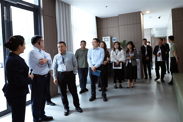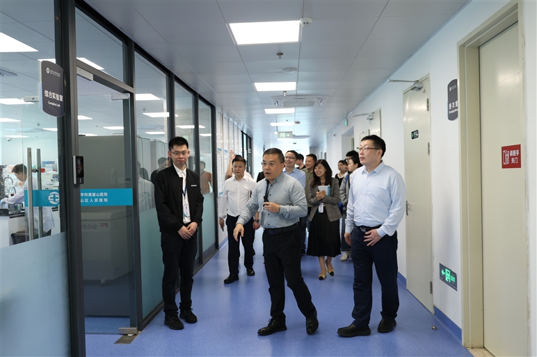 当日14:30,由重医附二院李兴升副院长带队一行抵达附属璧山医院。在附属璧山医院院长郭进军、副院长徐昌勇等陪同下,首先参观了医院门诊大厅、健康管理部、中心实验室及科教实训室等重点区域。在中心实验室参观环节,郭进军院长亲自担任讲解,详细介绍了实验室的平台建设、科研设备配置、在研课题及成果转化情况,展现了医院近年来在科研创新方面的长足进步。通过实地走访,重医附二院团队对附属璧山医院的基础设施、学科建设及教学科研平台有了直观而深入地了解。