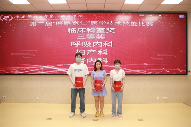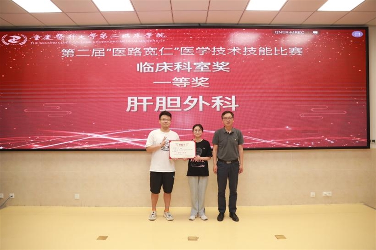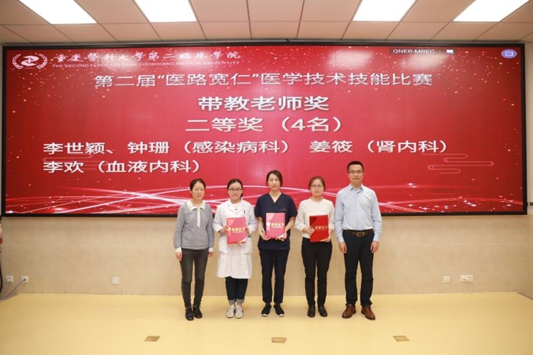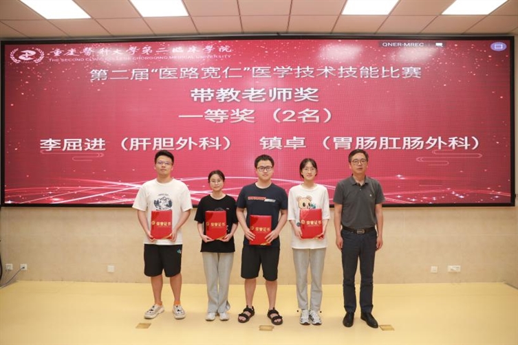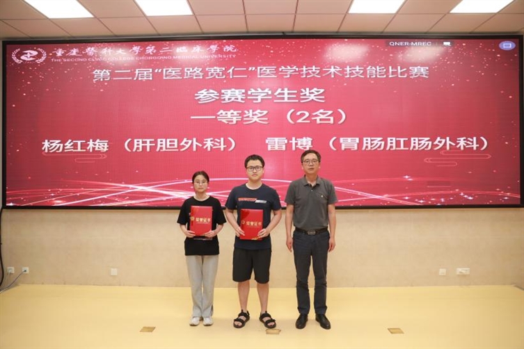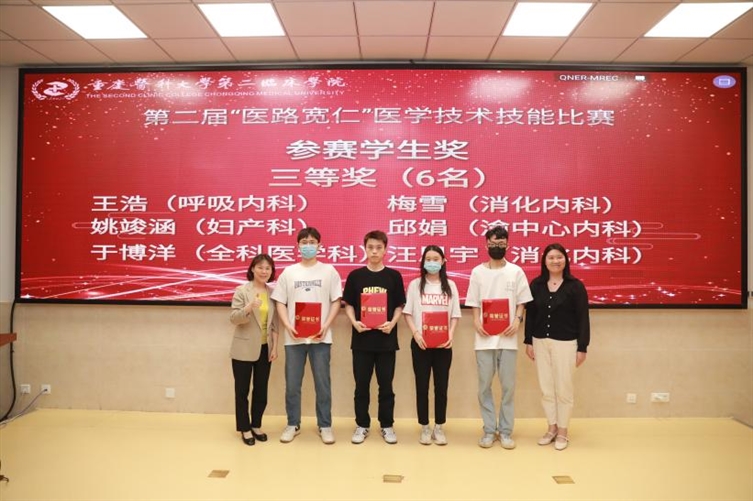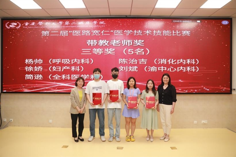 33支代表队共75名大五实习本科生参赛,选手分别来自本院29个临床科室和重庆医科大学附属第三医院、重庆市第五人民医院、重庆市第九人民医院、遂宁市中心医院4家医院。经过心电图及X线平片判读、单人技能操作、体格检查、双人技能操作的激烈角逐,比赛决出院本部学生个人一等奖2名、二等奖4名、三等奖6名,带教老师个人一等奖2名、二等奖4名、三等奖5名,临床科室奖一等奖1个、二等奖2个、三等奖3个共29个奖项;基地组学生个人一等奖1名、二等奖2名、三等奖3名,优秀组织奖一等奖1个、二等奖1个、三等奖2个共10个奖项。本院实习本科生肝胆外科杨红梅、胃肠肛肠外科雷博荣获个人一等奖,李屈进、镇卓老师获带教老师一等奖,肝胆外科获临床科室一等奖。重庆医科大学附属第三医院实习本科生唐潘荣获教学基地医院个人一等奖,重医附三院获优秀组织奖一等奖。