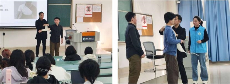 在气道异物梗阻急救培训中,助教们通过“剪刀石头布”口诀,生动形象地传授了海姆立克急救法的操作要领。学员们两两配合,模拟真实场景进行演练,助教全程指导,及时纠正动作细节。经过多次练习,学员们逐渐掌握了这一关键时刻能够挽救生命的技能。