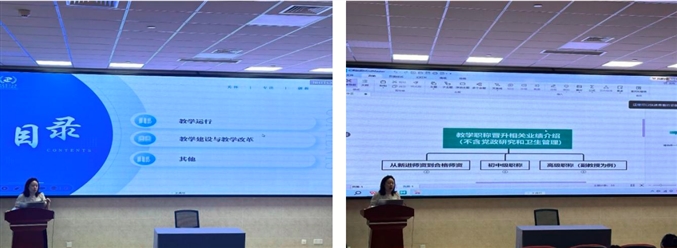 最后教务处教务科文霞副科长以职称晋升为导向,进行相关教学业绩介绍,通过对条款的分析和重点的标注,引导每位教师在今后工作中主动参与教学,勇于迈出第一步,多开展教学论文撰写、教改课题申报以及课程建设等工作,同时要提升教学能力,重视评价效果,以便早日实现个人成长和提升。