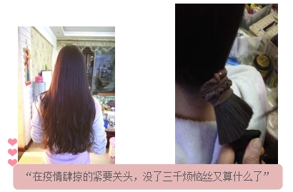 关键时刻见担当!作为一名优秀的共产党党员同志,王兰护士在疫情发生的第一时间就主动向护士长请缨希望可以去到前线。专业技术过硬,身体素质一向很好,她做好了随时奔赴前线的准备。听到需要我们科护士前往孝感的消息,她放下手中的治疗盘,走到护士长面前,又说出了“我愿意”三个字。与家人做好沟通,得到家人的支持后,便开始了出行前的准备。为了防止交叉感染,也为了更方便的工作,她没有一刻迟疑,毅然让母亲将她那及腰的长发剪下。剪短了心爱的长发,露出了更加美丽的脸庞。