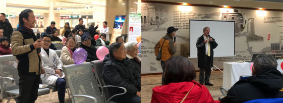 本次活动还邀请到一名外国友人Bill与大家交流,原来Bill的母亲在上个世纪60年代也出现了认知障碍,但当时全社会对于认知障碍相关疾病的认知不够深入,就连美国的医生都不能告诉Bill他的母亲到底患的是什么疾病,也没有人可以帮助他们,Bill感叹到现在有这样公益的活动非常好,有医生护师给公众宣传专业知识。Bill回想到母亲去世前的情景,他带着两个孩子去看望母亲,老人家已经认不出他和孩子,但她知道她爱他们。他呼吁家属即使患者认不得你了,但他们仍然有情感,应该多和患者交流、多陪陪患者、给他们唱歌和听音乐。最后Bill给大家带来了吉他曲,将现场的热情推向了高潮。