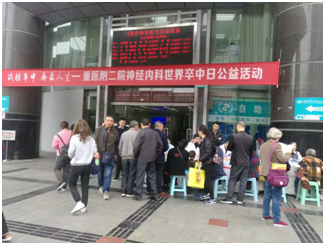 在第十三个世界卒中日到来之际,为切实提高人民群众脑卒中防治基础知识,倡导健康的生活方式,践行重医附二院百年宽仁“克宽克仁,彰信兆民”的院训。神经内科在主任陈阳美教授的倡导下,于2018年10月29日上午在“一院两区”开展“世界卒中日”健康科普公益活动。