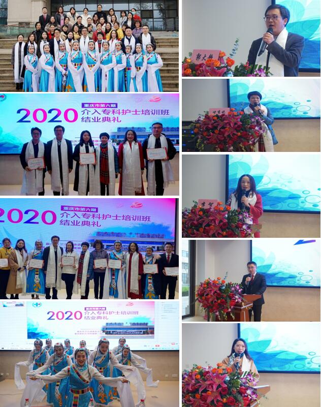 结业典礼正式开始前,嘉宾和学员们共同观看了由来自湖北省孝感市的学员代表董迎迎牵头制作的震撼又暖心的视频短片,该片全面回顾了学员们三个月以来学习生活的点点滴滴,还亲手创作诗词一首感恩我院介入专科护士培训团队的辛勤付出,让在场的全体人员无不为之动容。而来自西藏昌都市人民医院的2名学员洛松成措、袁凤梅则带队编排了一支藏族舞蹈——《缘定萨玛志》,殷切的表达了藏区人民对重医附二院践行援藏政策,主动帮扶的感激之情。舞毕,队员为出席本次典礼的嘉宾献上了洁白的哈达,唯愿藏区与内地人民心手相连、友谊长存。