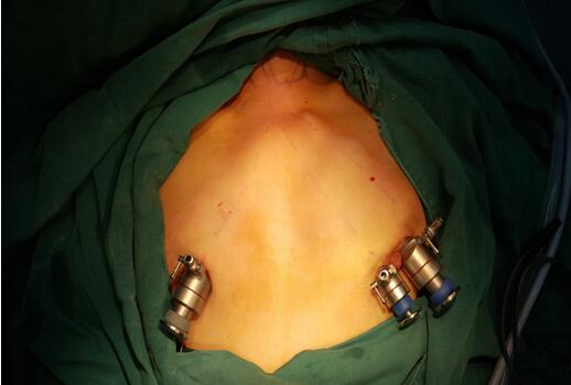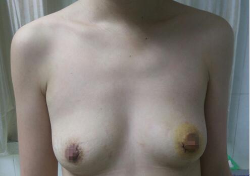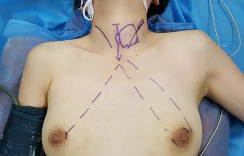 近年来,甲状腺肿瘤发病率越来越高,且逐渐年轻化,其主要治疗方式为手术切除,传统的手术切口位于颈前,但颈部是体现人体美的重要部位,术后瘢痕极大地影响了颈部的外观,不可避免的给部分患者造成了心理上的创伤。随着腔镜外科的发展,一种既能切除肿瘤,又不影响颈部美观的手术方式应运而生。全腔镜下甲状腺手术切口隐蔽,颈部没有疤痕,美容效果极佳。自2013年以来,我院乳腺甲状腺外科全腔镜下甲状腺肿瘤切除手术已顺利开展了数百例,切口位于双侧乳晕及患侧腋前线乳房皱襞取处,术后美观度较高。近期,乳腺甲状腺外科明佳副教授发现,对于乳晕较大、颜色较深的患者,若三处切口均位于乳晕,术后瘢痕更难以发现,美观度更佳,通过数月的实践,均得到了满意的答复。