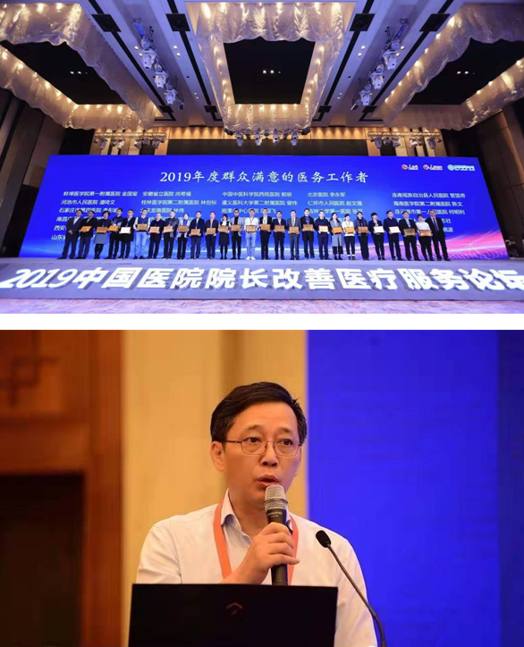 2019年12月14日,由国家卫生健康委医政医管局、人民网、安徽省卫生健康委联合主办的“2019中国医院院长改善医疗服务论坛”在安徽合肥举行。大会以“我们在行动,我们共分享”为主题,旨在发掘和树立典型案例,突出展示医疗机构开展改善医疗服务的创新举措、患者满意度的提升,对2019年改善患者就医体验成绩突出的单位和个人进行了表彰。全国共有27位医务工作者入选“2019年度群众满意的医务工作者”,我院心血管内科主任殷跃辉教授喜获殊荣。