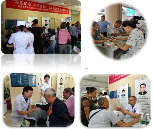 8月16日8:30,重医附二院邓昌明和刘地川两位主任医师携护理团队在万州区人民医院门诊大厅开展义诊公益活动,闻讯前来的群众早已排长队等候。义诊中,专家们耐心询问病史、认真读片,为病友们解疑答惑,提供专业而详尽的医疗建议,耐心写下医嘱,诊疗后还不忘叮嘱日常保健常识;护士们在旁为义诊的群众规范而熟练的测量血压和指血糖,并进行护理健康宣讲和生活指导。
