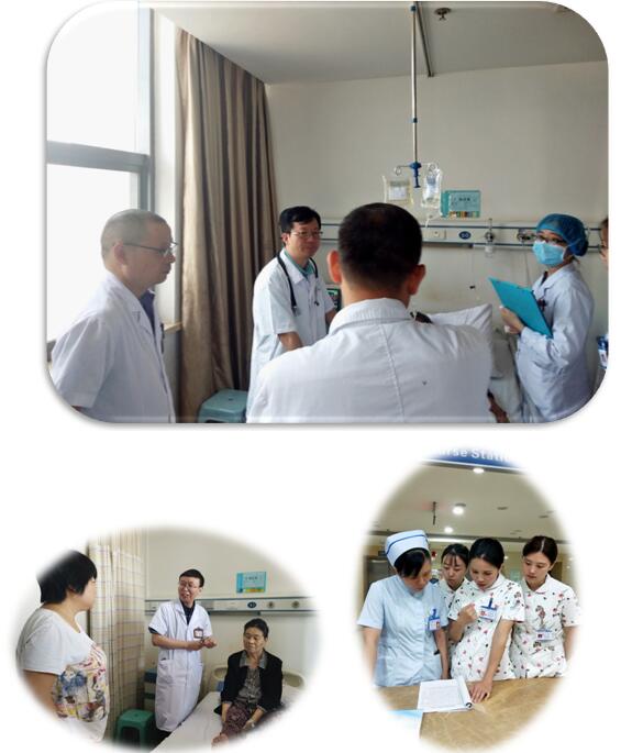 义诊结束,黄晶教授带着团队一行就立即赶到医院16楼——心内科住院部,万州区人民医院心内科罗先虎主任早已整理好病历资料,引领专家们到病患床旁,黄晶教授耐心仔细的询问症状、进行重点查体,对诊疗过程、各项检查指标以及用药情况进行了梳理,细致地为科室年轻医生们剖析诊断思路及治疗方案,并提示临床上遇到类似患者需要进一步考虑哪些病因,为该患者的进一步治疗方案提供了明晰的指导;同时,邓昌明和刘地川两位专家在查房过程中与病人亲切地交谈,医患沟通氛围融洽和谐,病情分析透彻,治疗方案经济可行,为青年医生们提供了难得的查房和沟通模板。医疗查房的同时,重医附二院心内科龙明英护师与科室护士长带领的护理骨干们进行交流,从危重病人的抢救流程和静脉治疗等方面进行了讨论和沟通。