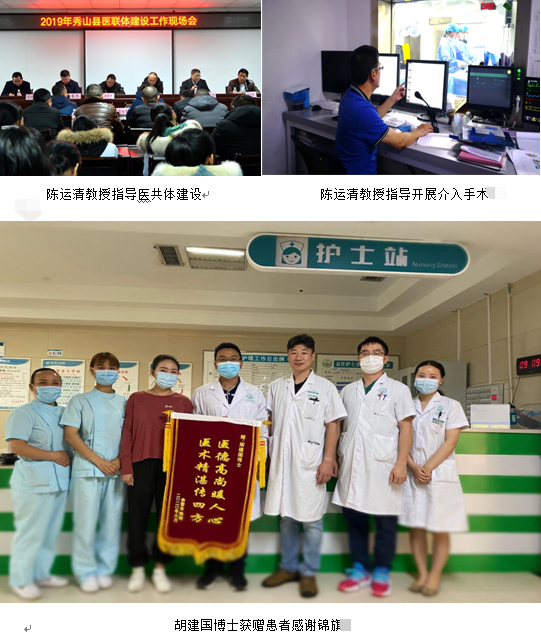 我院下派秀山分院挂职副院长心血管内科陈运清教授、驻点专家妇产科胡建国博士被秀山县卫健委评为2020年秀山县“支医先进个人”。陈运清教授于2018年11月至2020年4月在秀山分院任挂职副院长,历时17个月,主要分管外科系统、检验科和三级医院创建工作,以学科建设、人才培养为突破口,着力提升秀山分院医疗技术水平。挂职期间,指导开展介入手术660余例,其中,冠脉内血管内超声、冠脉旋磨术等在渝东南片区处于领先地位;成功培养单独行冠脉造影手术、PCI术医生共4名。同时,先后带队深入秀山县基层医疗机构指导医共体建设10余次,最终以重医附二院—秀山分院—龙池镇中心卫生院为框架的三级医疗卫生机构分工协作体系初步形成。妇产科胡建国博士于2020年在秀山分院驻点工作6个月,充分发挥自身专业优势,指导开展腹腔镜、宫腔镜手术50余例,其中成功抢救一名急危重症患者,并获感谢锦旗1面。
