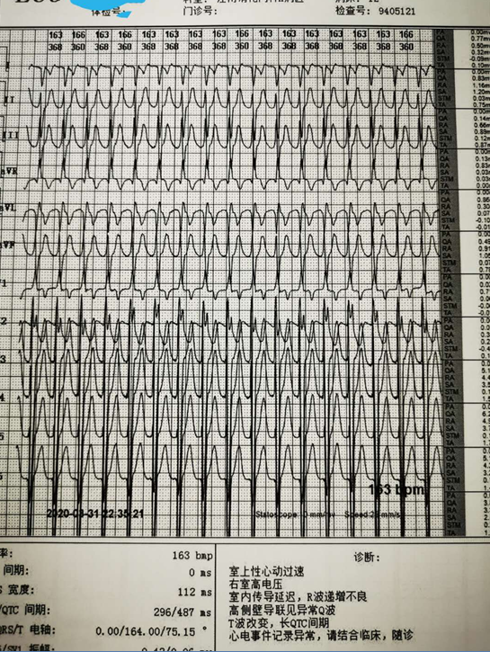该患者是一名22岁男性,2岁时因严重发绀发现单心室畸形,伴左、右心房异位和共同房室开口。10岁时因病情恶化于儿童医院行“双向 Glenn 手术”。入院前2天,患者因胰腺炎住院治疗期间突发室上性心动过速(以下简称室上速),心率160次/分,氧饱和度下降至最低76%,转入心血管内科进一步诊治。