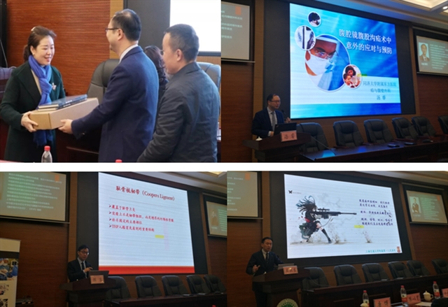 首先,潼南区卫生健康委员会党组陈昂书记讲话,对专家团队不辞辛苦来到潼南开展适宜技术项目推广表示诚挚感谢和热烈欢迎。刘春英院长及何胜君院长则希望大家珍惜此次学习的机会,加快医疗学科发展、提升外科技术,并希望各位专家以后经常把这种盛会送到基层。汤睿教授致辞着重阐述了疝外科健康促进学组成立的背景、学组的宗旨和组织架构等,希望通过此次学术交流会,对潼南地区医院在疝的治疗水平上有进一步的提高。同时,作为适宜技术推广活动的一项推广内容由血管疝腹壁外科唐博教授及汤睿教授为潼南区人民医院及中医院分别赠送了腹腔镜操作训练器械和最新疝外科专著。