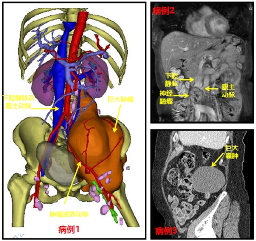 第一例患者肿瘤巨大,CT显示最大直径为237mm,肿瘤侵犯破坏髂骨、髋臼并包绕髂动脉,左髂静脉受压完全闭塞合并下肢深静脉血栓形成,左下肢及左上肢严重肿胀,唐博副教授及罗海龙主治医师、颜海燕住院医师、张灏龙住院医师团队针对该患者先行上腔静脉及下腔静脉滤器置入术,后腹膜肿瘤滋养动脉栓塞术,尽可能减少血栓脱离导致肺栓塞风险及肿瘤切除术时大出血风险,介入后12小时内在全麻下行后腹膜巨大恶性肿瘤切除术,术中出血少于200ml,手术非常顺利,术后患者左下肢肿胀明显缓解,患者及其家属十分感激。第二例患者秀山患者,罗文军教授及唐博副教授团队采用经后腹膜入路紧贴下腔静脉及腹主动脉行神经鞘膜瘤完整切除术,手术时间仅不到2小时,术后第2天患者下床活动,患者及其家属非常满意。第三例患者BMI大于30,且有2型糖尿病,考虑肿瘤良性可能性较大,唐博副教授团队充分评估其伤口感染风险后,为减少腹腔脏器损伤风险,最终选择全腹腔镜下经后腹膜入路行后腹膜巨大肿瘤切除术(术中冰冻提示为中肾来源腹膜囊肿),手术完整切除囊肿,术中出血仅30ml左右,术后患者第2天自己下床活动,自诉完全无疼痛感,术后第4天出院。
