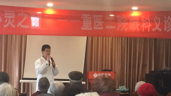 可喜的是,2017年3月9日下午,重庆医科大学附属第二医院眼科副主任马华峰副教授、胡晓鹏副教授及李兰娇主治医师到沙坪坝歌乐山合展养老院开展了义诊活动,给养老院的老人送去了光明的希望。