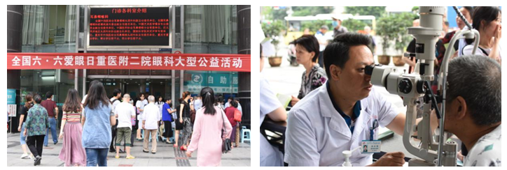 2017年6月6日,在温和的阳光中迎来了第二十二届“全国爱眼日”,重医附二院眼科即重庆市防盲治盲技术指导中心,组织各医院积极响应卫计委号召开展“爱眼日”相关活动,同时,在重医附二院以“‘目’浴阳光,预防近视”为主题在重医二院院内开展“义诊活动”及“科普讲座”两个活动,并与第三军医大学西南医院全军眼科中心在袁家岗联通大厦共同举办了义诊活动。