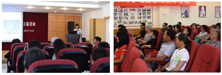 部分患者义诊后直奔统战部七楼参加10:00开始的“科普讲座”,我们围绕着“‘目’浴阳光,预防近视”的主题,由重医附二院眼科简嘉博士、王秀青副主任医师、许燕博士分别带来《青少年近视防治》、《中老年患者屈光不正治疗进展》、《电子产品对眼部的损害》三个精彩的讲座,向广大前来义诊的患者介绍了如何预防近视,保护双眼以及发生视力下降后的处理方法。讲座结束后,大家纷纷表示在生活中,孩子们频繁使用手机、平板电脑等电子产品,在获取知识和娱乐的同时对视力也造成了很大的损害。这样的讲座警示着大家要预防近视一定要养成良好用眼习惯、增加室外运动和注意眼保健,当孩子出现看电视眯眼、视物喜近、偏头视物、屈光不正等问题时,家长千万不能忽视,要尽快到医院进行正规的诊治,避免孩子视力进一步下降,给孩子以后的生活带来困扰。